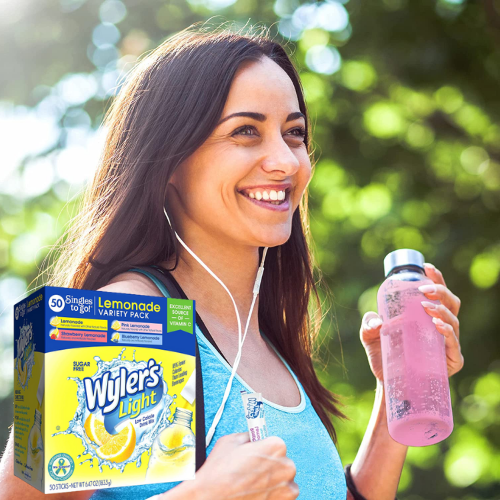 FOUR 50-Count Variety Pack Wyler’s Light Singles Water Drink Mix as low as $4.62 EACH Box (Reg. $9.17) + Free Shipping! $0.09 per Packet! Pink Lemonade, Strawberry, Blueberry & Lemonade! + Buy 4, Save 5%
