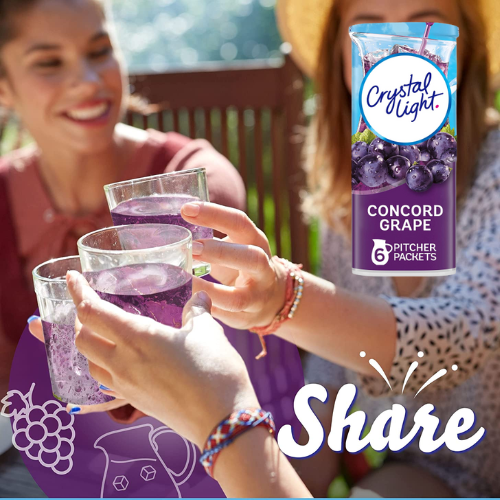 FOUR 6 Pitcher Packets Crystal Light Concord Grape Powdered Drink Mix as low as $2.35 EACH Canister (Reg. $3) + Free Shipping – 8K+ FAB Ratings! $0.39 per Packet! + Buy 4, Save 5%