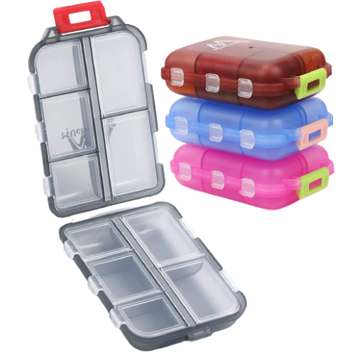 - PORTABLE: Travel pill box with 10 individual compartments (4 large compartments and 6 small compartments for your different amounts of pills). Especially suitable for short travel since it is small in size and convenient to carry.