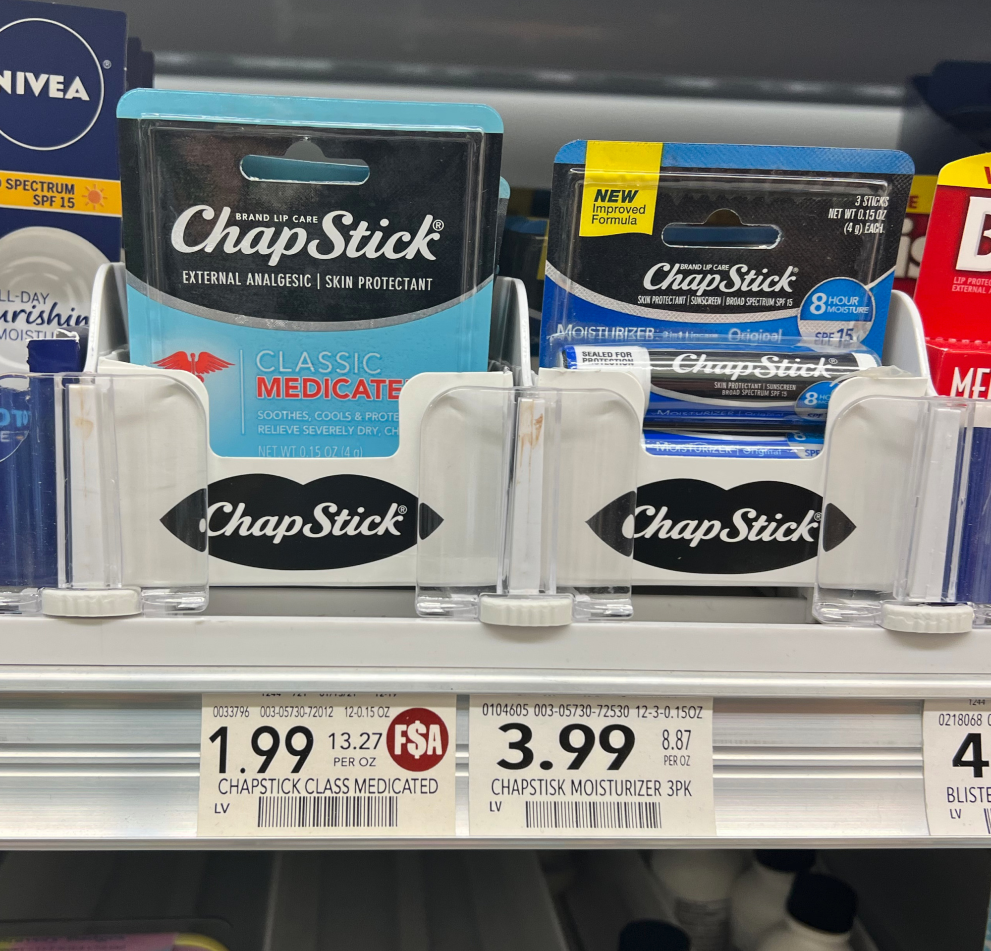 Chapstick, 0.12 to 0.45 oz, $1.99+