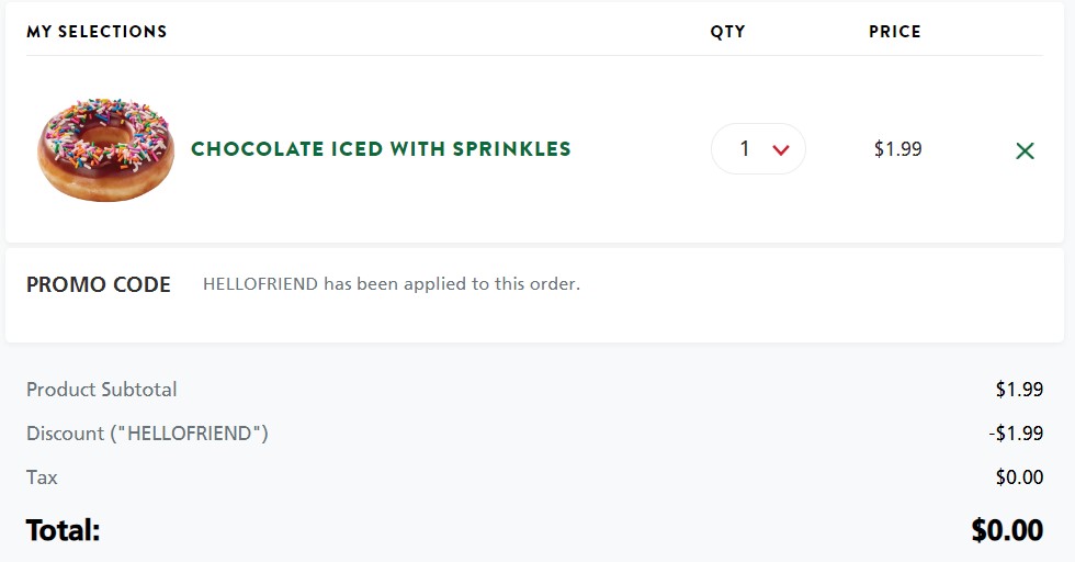 Order using the app and enter code HELLOFRIEND to get your free doughnut. To redeem in-store, simply scan your rewards app barcode or provide account phone number. Limit 1 redemption per customer.