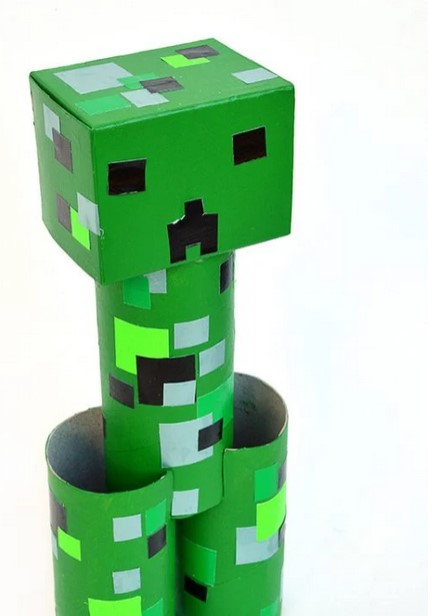 If you have extra cardboard laying around in any for, you can make a whole army of Minecraft creepers. Use your imagination to make other Minecraft figures!