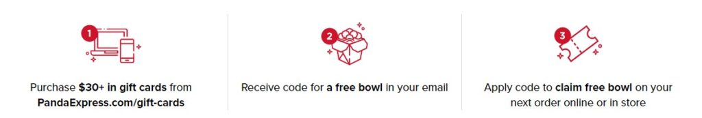 Just purchase your $30 worth of gift cards online and you’ll receive a coupon code via email for the free Panda Bowl!