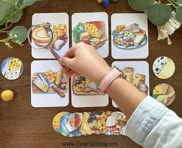 Download a FREE printable Cheese Board Matching Game! This would be great educational fun for young kids.