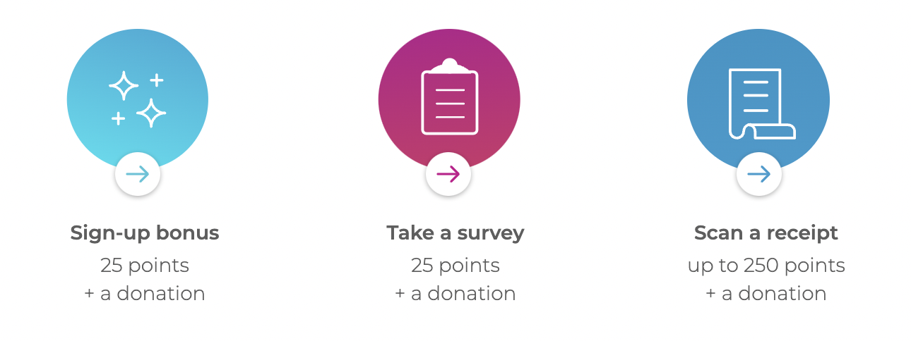 You’ll earn points by taking online surveys or quizzes. Earn 50 points for each P&G item you purchase when you scan shopping receipts that include P&G brand items. Every time you earn more rewards, P&G also makes a donation to the cause of your choice.