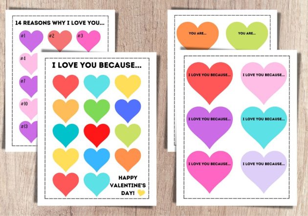 Download a set of FREE Valentine’s Day I Love You printables to give to your kids! There are several variations to choose from.