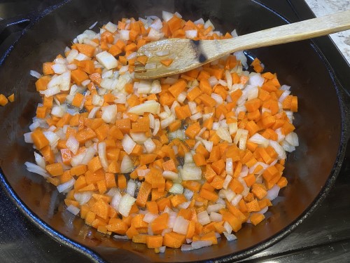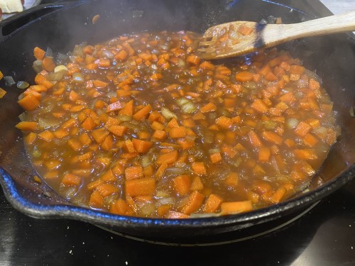 2. To make the filling, heat the olive oil in a saute pan over medium heat. Add the onion, carrots, and jalapeno and cook until soft, about 5 minutes. Add the garlic and ginger and cook until fragrant, about 1 minute. Add the sriracha, honey, and soy sauce and allow everything to simmer and reduce slightly, about 7-10 minutes. Add the chopped chicken and stir to combine.
