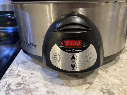Cook for 3-4 hours on high or 6-8 hours on low (I did 3.5 on high!).