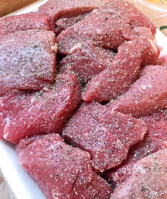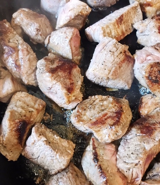 1. Season the beef chunks liberally with salt and pepper.