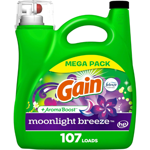 - Includes one 154 fl oz bottle of Gain + Aroma Boost Liquid Laundry Deteregent, Moonlight Breeze scent, enough for 107 loads