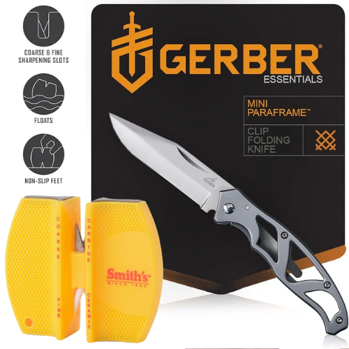 Hop over to Amazon and get a deal on Gerber Gear MIni Folding Pocket Knife + Smith’s 2-Step Knife Sharpener. The Paraframe Mini Pocket Knife is has an smooth stainless steel handle and open frame that is minimal and lightweight. The frame lock holds the sharp blade open and safely closes for secure storage. Plus, the 2-Step Knife Sharpener features two tungsten carbide blades with pre-set angles to ensure the perfect edge every time. The two crossed ceramic rods also have pre-set angles and provide a smooth finished edge to already sharp knives. Excellent for use on all types of knives, especially fillet knives. This is a great deal, compared to $10 JUST FOR THE KNIFE at Walmart.