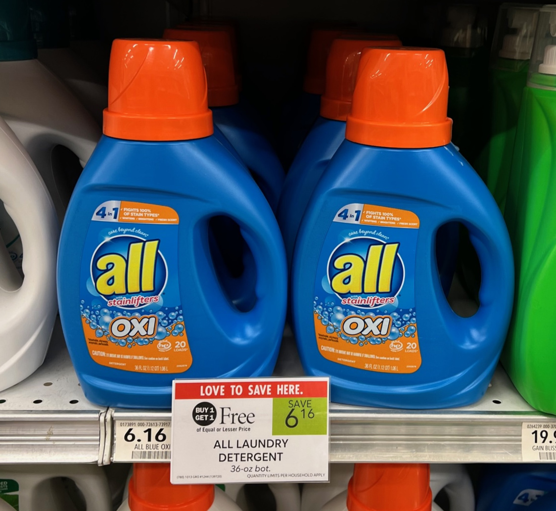 All Laundry Detergent, 36 or 88 oz bot, or 39 or 49 ct, BOGO $6.16 – $11.39
