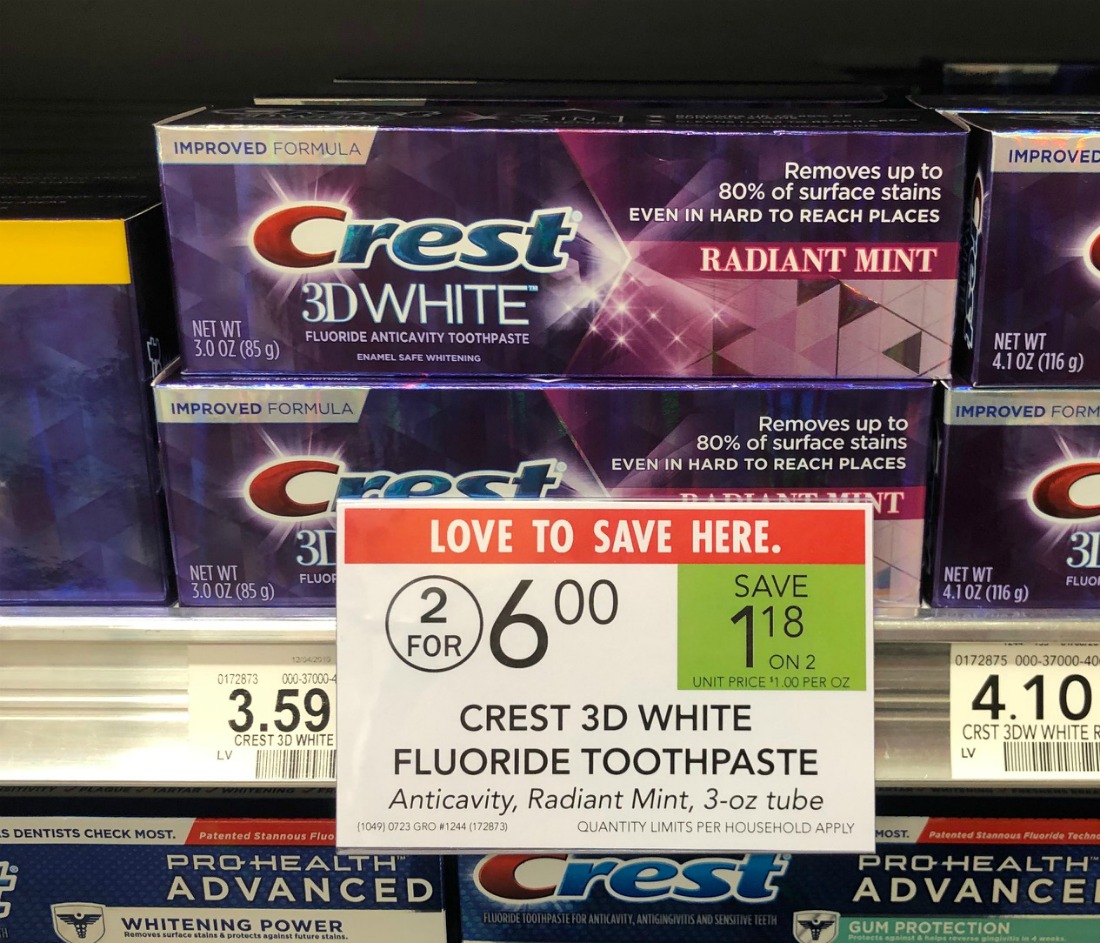 Clip that big Crest digital coupon and get cheap toothpaste right now at Publix. Crest 3D White or Pro-Health is only a buck with the sale and coupon combo.
