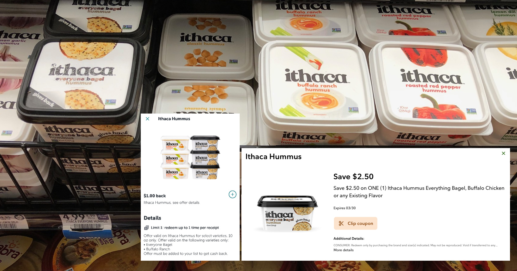 –$2.50/1 Ithaca Hummus Everything Bagel, Buffalo Chicken or any Existing Flavor (Publix Digital Coupon)