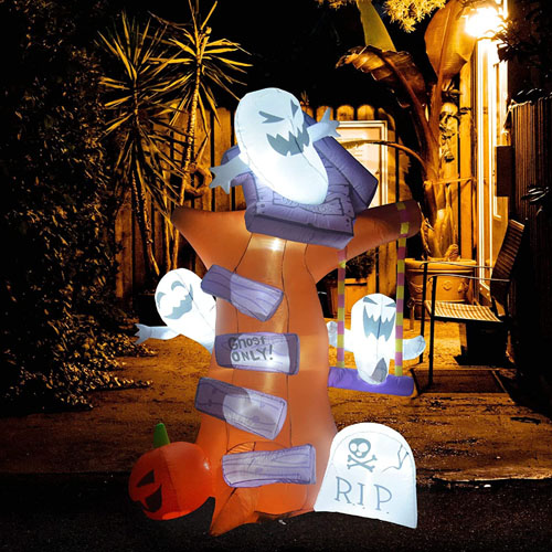 - Cute Appearance Design: GOOSH Halloween inflatable ghost tree with ghost pumpkin and tombstone come with LED lights built inside. The ghost tree with ghost pumpkin and tombstone made children’s love at first sight. Beside Halloween, it can be used as any other holiday decoration. Installed in the courtyard to enjoy Holiday with your family and spreading a happiness atmosphere to your neighborhoods.