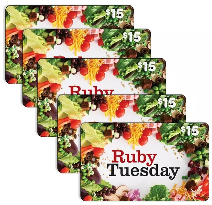 Ruby Tuesday 5 x $15 Gift Cards ($75 value) – $56.25