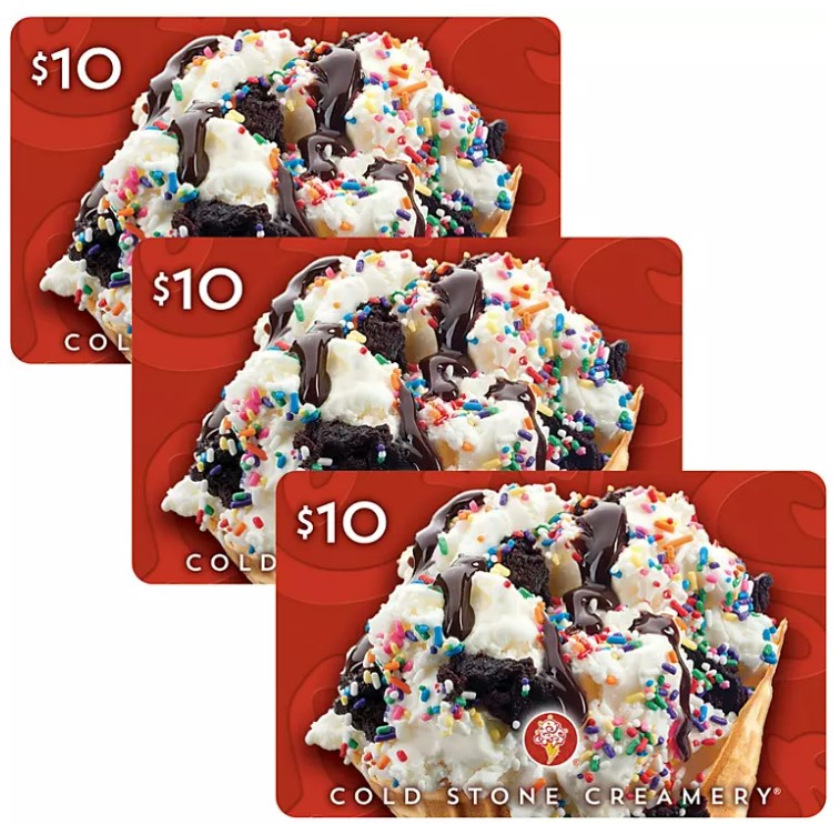 Cold Stone 3 x $10 Gift Cards ($30 value) – $20.79