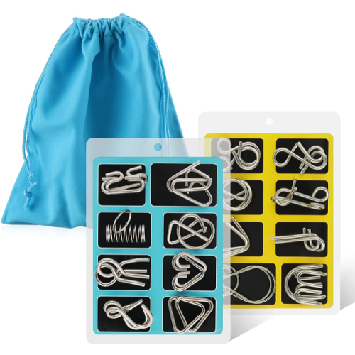 Metal Brain Teaser Puzzle Set of 16 with Pouch