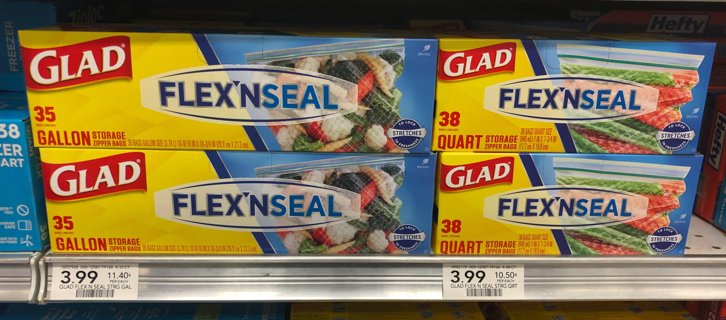Glab your Glad coupon and take advantage of the discount. Grab the Press’N Seal for $1.85 per box and the boxes of Flex’N Seal Bags for just $2 each the next time you shop.