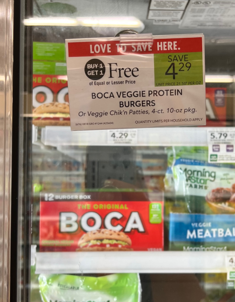 –$1/1 Boca Veggie Burgers, 4 ct box or larer (Ibotta Deposit) – Limit 3