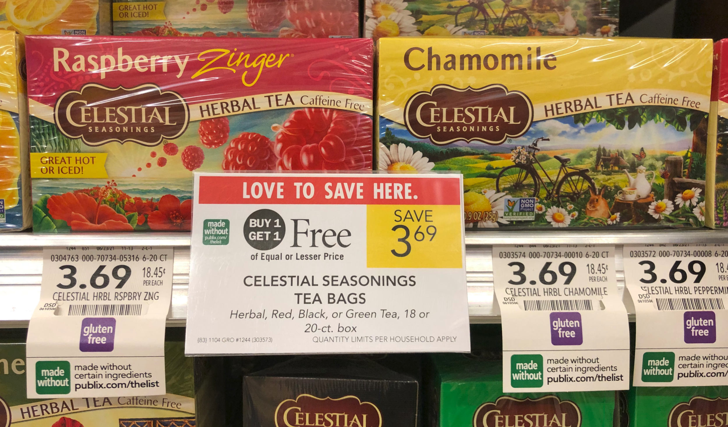 We have a great deal for all my fellow tea drinkers this week at Publix. After sale and coupon, you can pick up boxes of Celestial Seasonings Tea for as little as $1.35 each.