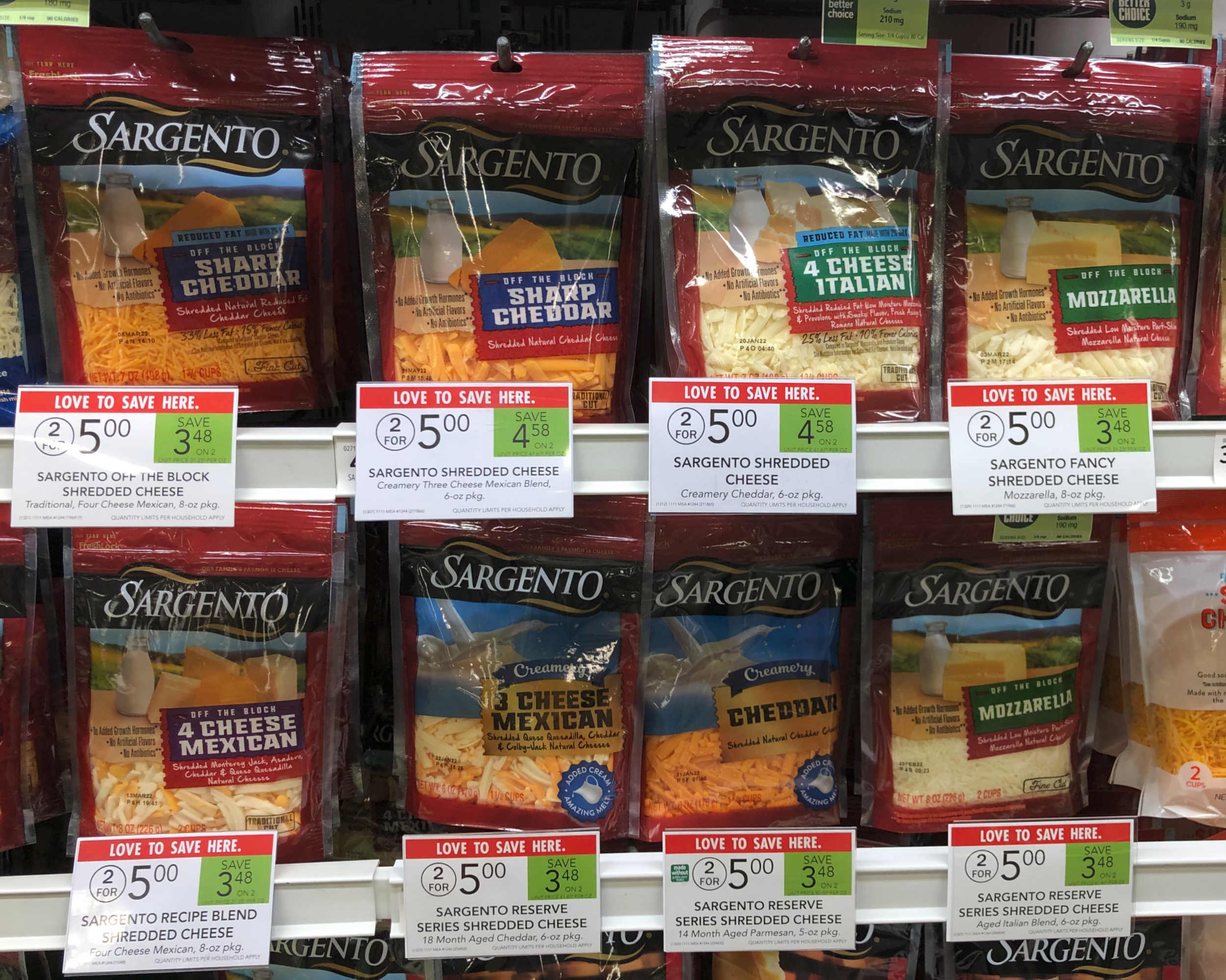 -$0.75/2 Sargento Shredded Natural Cheese, 11/14/21 SS (exp 1/9/22)