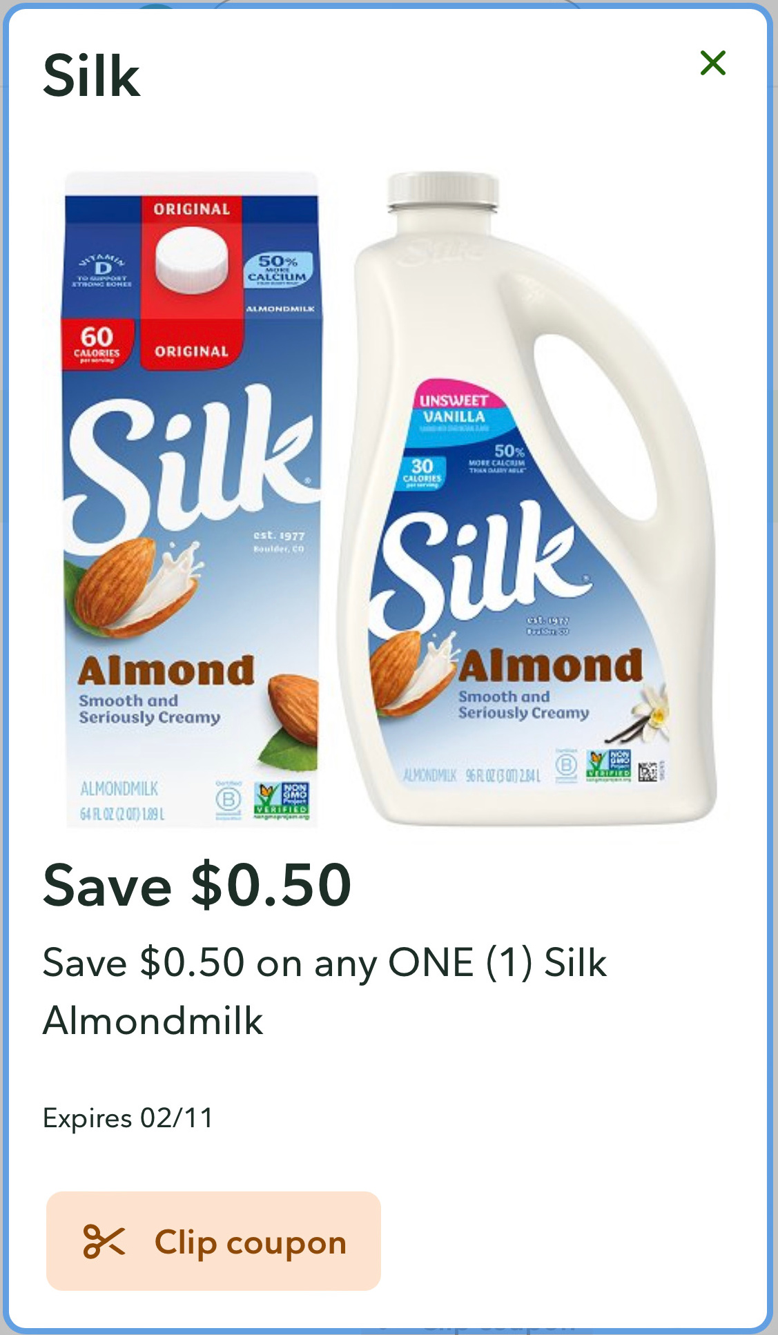 $0.50 on any ONE (1) Silk Almondmilk Publix Digital Coupon