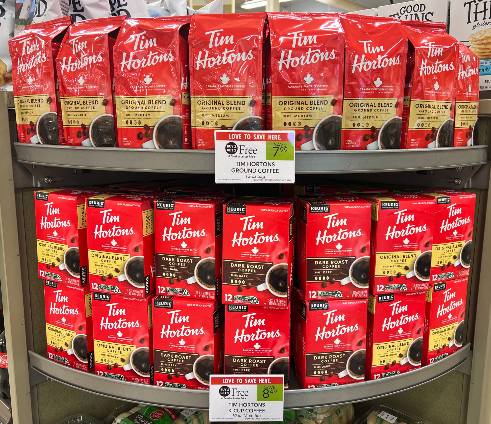 Tim Hortons K-Cup Coffee, 10 or 12 ct box, or Ground Coffee, 12 oz bag, BOGO $7.99 – $8.49