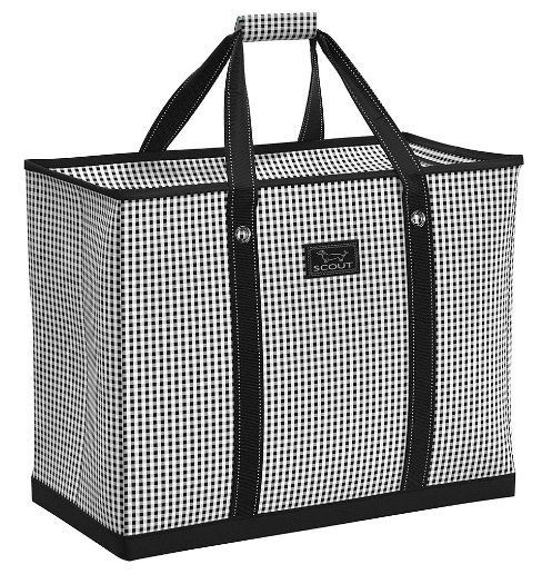 Meg here! I have one of these bags and it’s a perfect bag for the pool, beach, errand-running, overnight stays, and more. It’s also great for moms, because the vinyl material is spill-proof and so easy to clean!