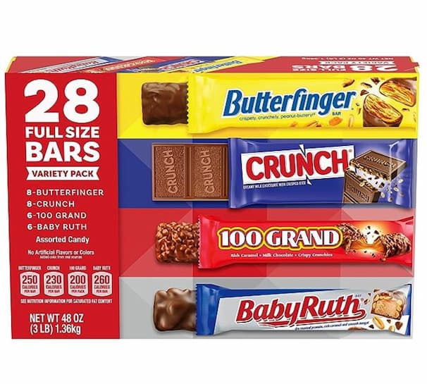 Get this Butterfinger, CRUNCH, Baby Ruth and 100 Grand, Bulk 28 Count, Assorted Full Size Chocolatey Candy Bars, Valentine’s Day Gift for just $21.01!