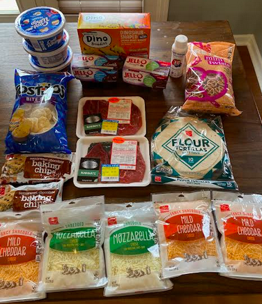 Turkey or Peanut Butter & Jelly Sandwiches/Chips/Fruit/Veggies x 3, Hard Boiled Eggs/Crackers/Veggies/Fruit, Mac & Cheese/Grapes/Oranges x 2, Chicken Nuggets/Carrot Sticks/Yogurt