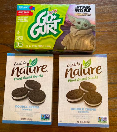 Peanut Butter & Jelly Sandwiches/Grapes/Carrots x 2, Ham & Cheese Sandwiches/Yogurt/Cucumbers, Mac & Cheese/Mandarin Oranges/Cookies x 2, Chicken Nuggets (from last week)/Blueberries/Peanut Butter Crackers/Apples, Leftovers