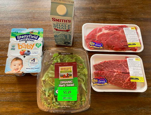 1 Stonyfield Baby Yogurt – $4.98 (Yes, this is terribly expensive but I wanted to introduce my baby to yogurt and I love this brand.)