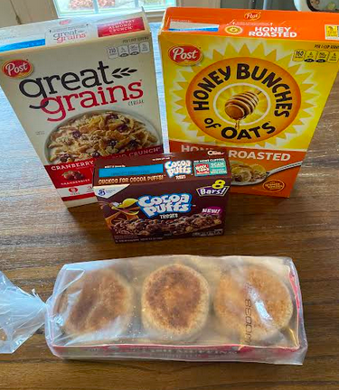 Peanut Butter & Jelly Sandwiches/Veggies/Chips x 2, Mac & Cheese/Mandarin Oranges, Cheese/Crackers/Fruit/Veggies/Granola Bars x 2