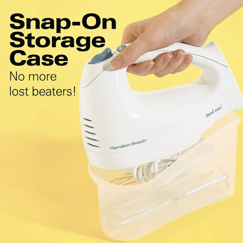 - Snap-on storage case: This hand mixer includes a handy snap-on storage case—no more lost beaters