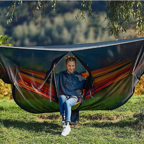 - Design with a durable double-sided zipper, our Hammock With Mosquito Netting allows you to zip and unzip inside or outside. It also features two elastic straps, easily set up the Hammock Net in minutes.