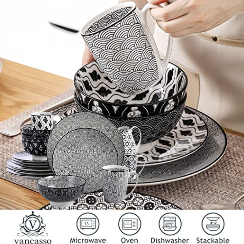 Have excellent use at any family get-together, formal banquet or just for everyday use. This 16-Piece Ceramic Dinnerware Set includes 4 x Cups, 4 x Bowls, 4 x Small Plates, 4 x Large Plates, features black and white glazed with 4 different patterns in exquisite appearance and fine workmanship, ideal for festival setting! Made of refined ceramic clay calcined at high temperature. The long-lasting material blocks moisture absorption and prevents cracking. Goes safe in Freezer, Dishwasher and Microwave. This dinnerware set with non-lead and non-cadmium, will not be any chemical reaction with the food, ensure your healthy diet. Right now you can snag this for as low as $63.59 when you use coupon code CKKZPWKJ at checkout. Through 07/14 or while supplies last.