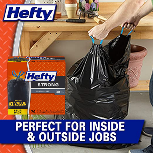 Hop over to Amazon and get a deal on Hefty 74-Count Strong 30-Gallon Trash Bags. Hefty Strong Large Multipurpose Trash Bags help you tackle cleanup jobs all around the house, thanks to their Hefty; Hefty; Hefty strength and large capacity; With their 30 gallon size, these garbage bags are ideal for collecting old clothes for donation, seasonal decorations, everyday kitchen trash and more Choose to Subscribe & Save, and you will score a great deal. Just make sure you have 5 or more items in your monthly order to max out the available discount of 15% off this item = $16.93! Subscribe & Save shipping is free!