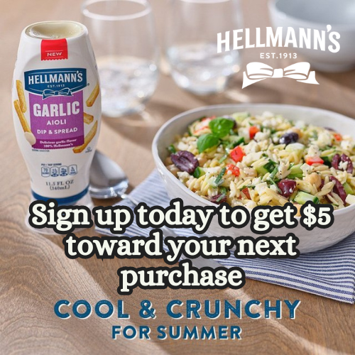 Hellmann’s Rewards: Sign up today to get $5 toward your next purchase, and be the first to hear about new products, recipes & savings!