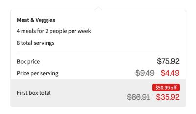 Choose a Classic Box that serves (2) or a Family Box that serves (4) and then choose how many servings you want a week. The FREE meals will be delivered over 5 weeks!