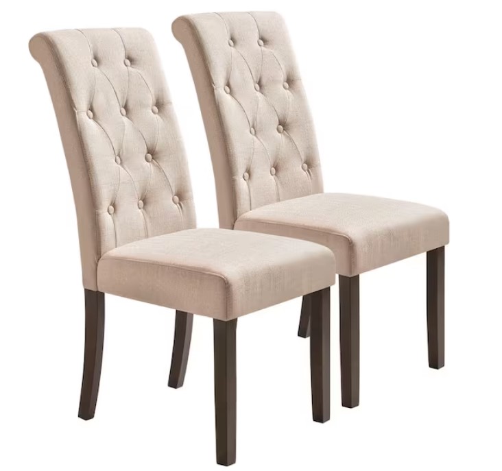 Beige Solid Wood Tufted Dining Side Chair (Set of 2) – $127.99 (reg. $370.97)