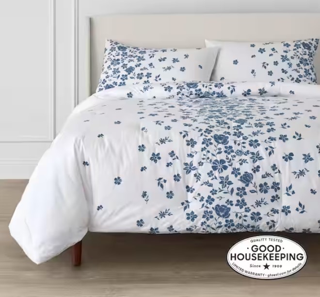 Salina 3-Piece White and Blue Embroidered Floral Cotton Comforter Set – $33.75 to $41.25 (reg. $135 to $165)
