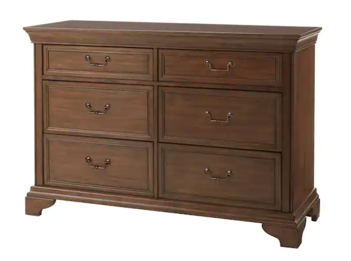 Beckford Walnut Brown Finish 6 Drawer Wood Dresser – $300.90 (reg. $899)