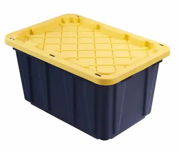 HDX 27 Gal. Tough Storage Tote in Black with Yellow Lid – $9.98 each when you buy five