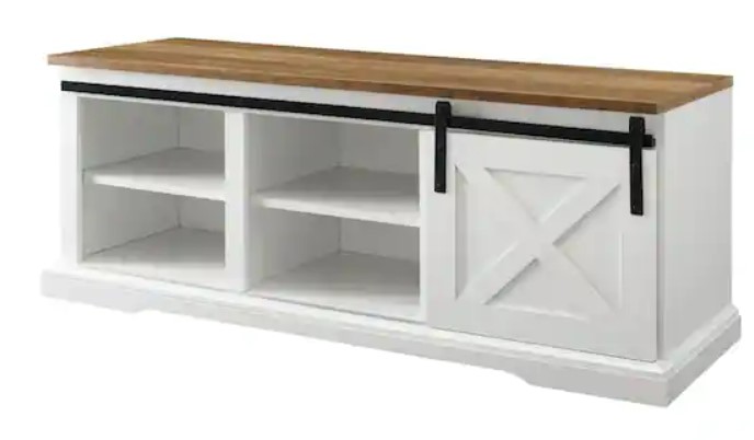 48 in. White / Reclaimed Barnwood Sliding Barn Door Entry Bench – $213.70 (reg. $356.04)