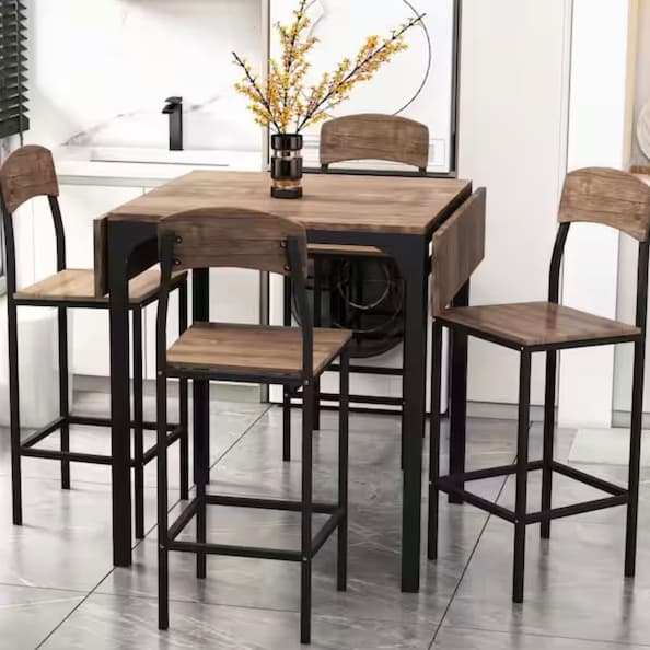 Get this 5-Piece Drop Leaf Rectangle Brown Wood Top Black Dining Room Set Seats 4 for just $277.40 shipped (regularly $453.83)!