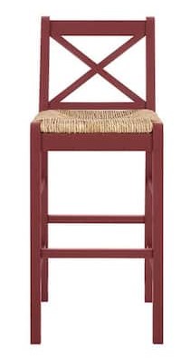 Dorsey Mason Red Wood Bar Stool with Back and Woven Rush Seat