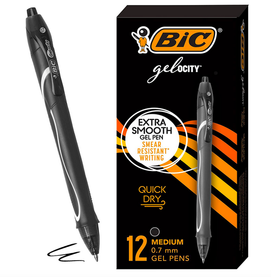 Get this BIC Gel-ocity Quick Dry Black Gel Pens, Medium Point (0.7mm), 12-Count Pack for just $7.42!