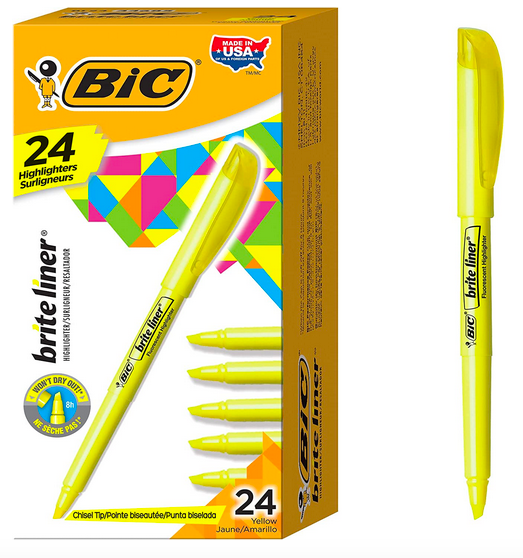 Get these BIC Brite Liner Highlighter, Chisel Tip, Yellow, 24-Count for just $5.44!