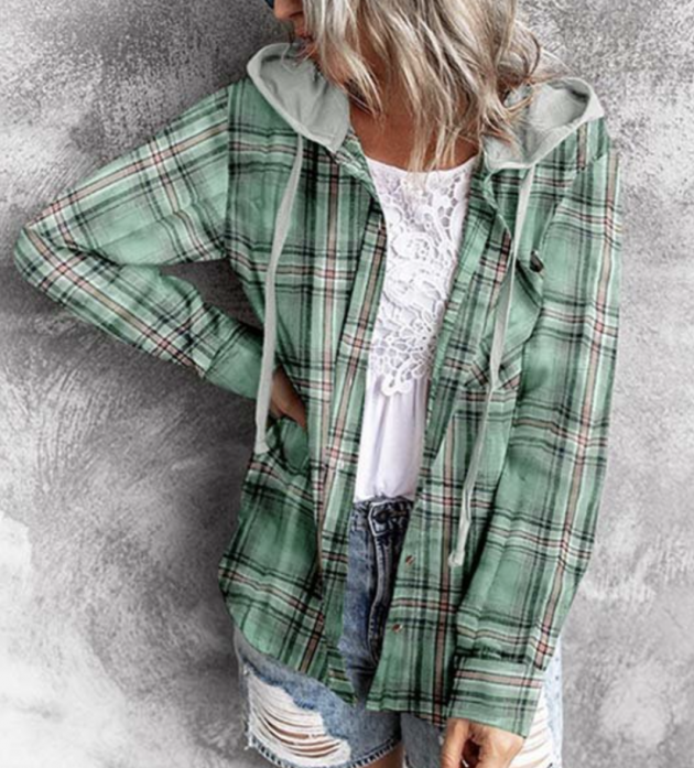 This Women’s Plaid Hooded Shacket is only $24.99! Choose from three colors.
